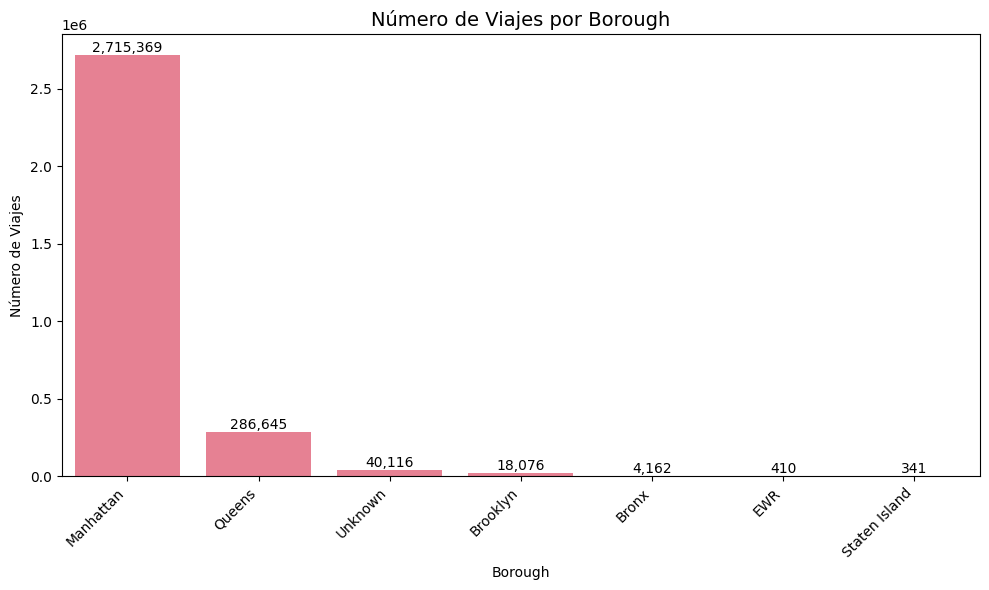 - Los boroughs presentan distribuciones desiguales de viajes, lo que sugiere patrones de movilidad distintos según la zona.