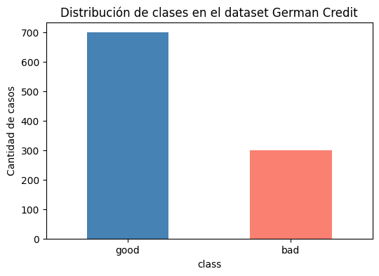 Esto es relevante porque los modelos tienden a favorecer la clase mayoritaria, aumentando la probabilidad de errores sistemáticos sobre la clase minoritaria (bad credit).
