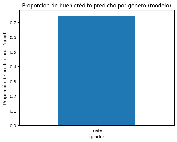 El modelo predice una proporción ligeramente mayor de “good credit” para hombres, indicador de un posible sesgo en la clasificación.