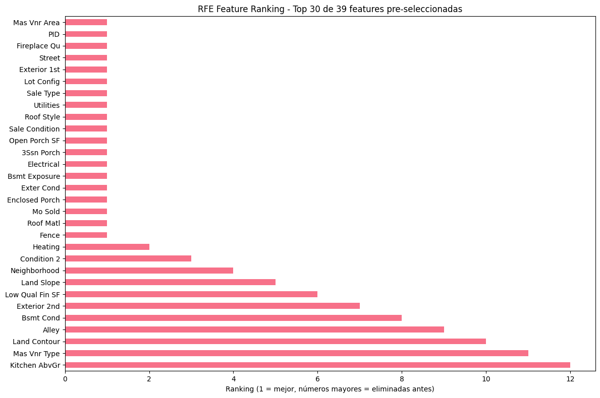 RFE Ranking – Top 30 Features Seleccionadas¶