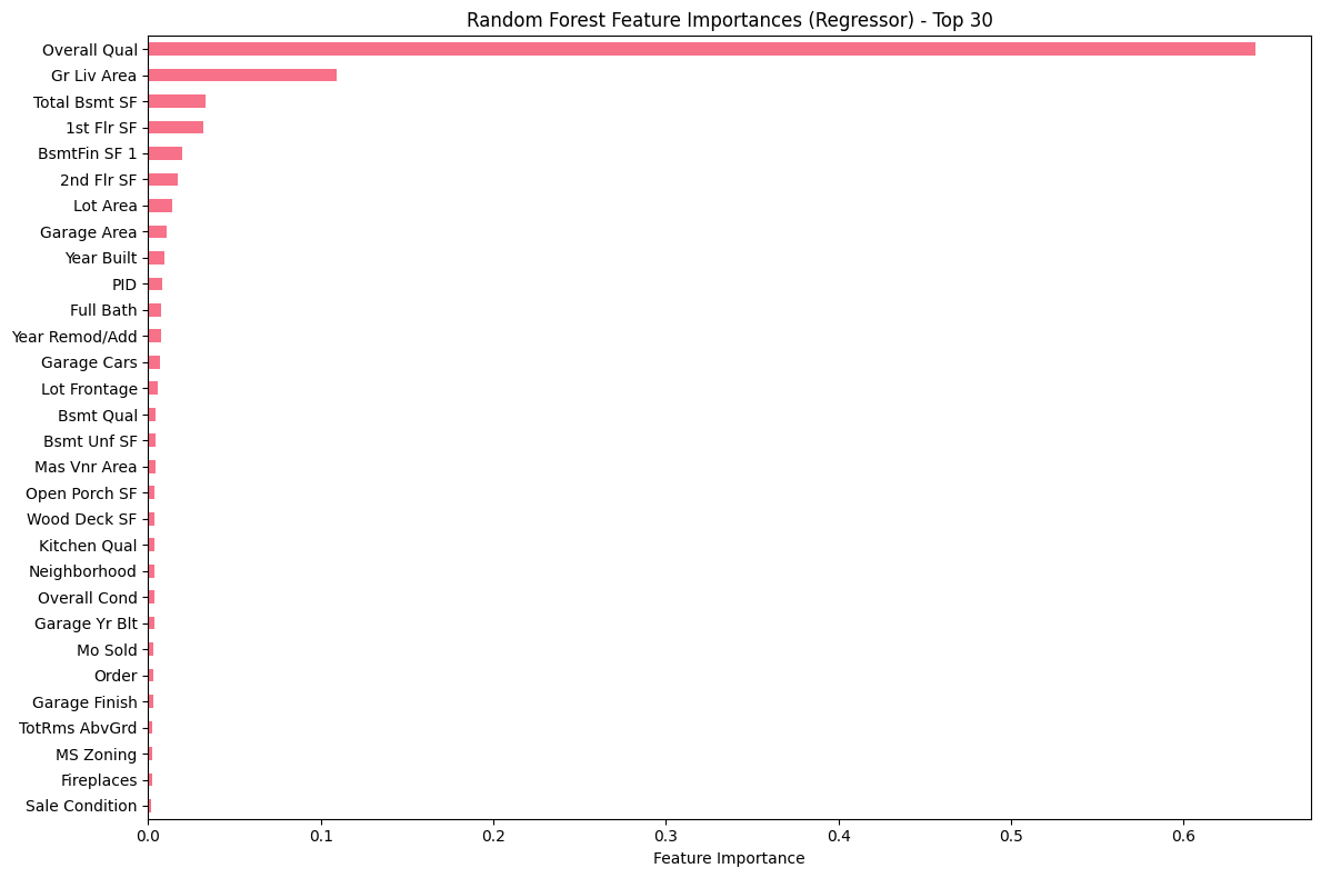 - Carga y limpieza del dataset Ames Housing (1.460 observaciones, ~80 features).