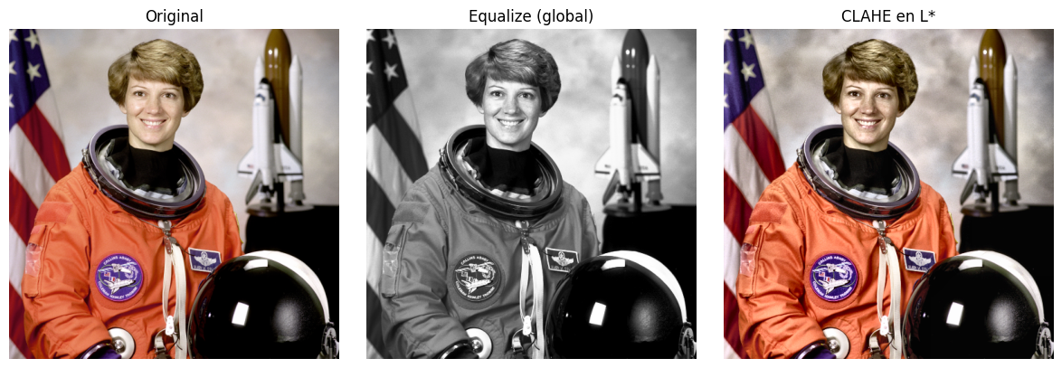 3. Comparación: Original vs Equalize vs CLAHE¶